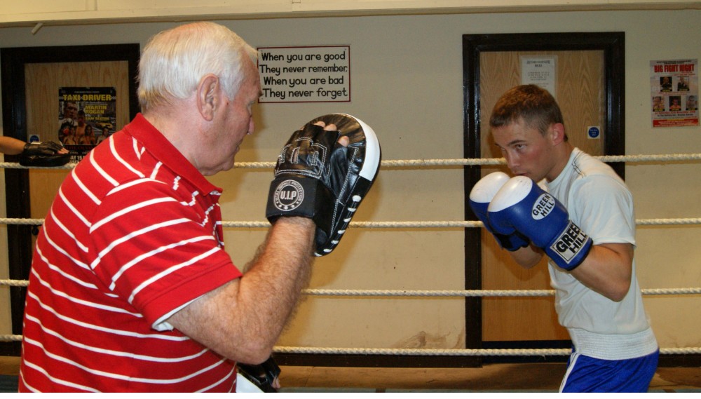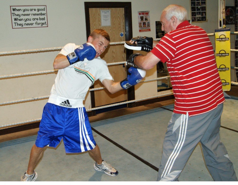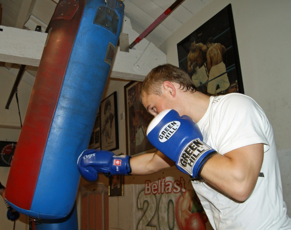 The second set of photos came in October 2009 at the Holy Family gym with Gerry Storey taking ‘The Jackal’ on the pads. That article ended up in Boxing News magazine as part of their ‘Hot Prospect’s series.