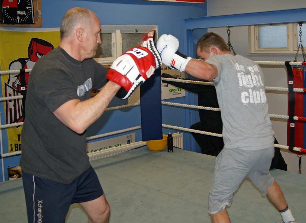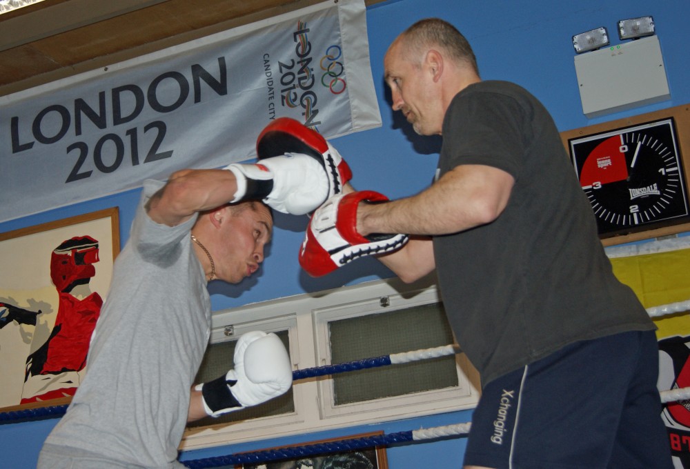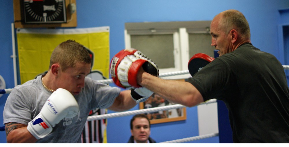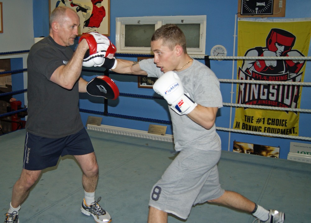 The second set of photos is back in Midland ABC as Carl sharpens his tools on the pads with Barry McGuigan.